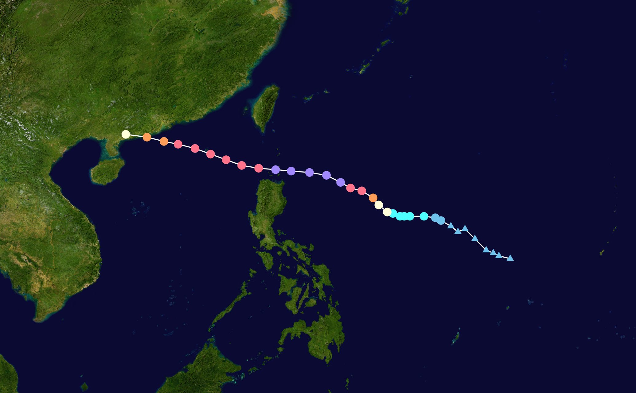 Траектория супертайфуна Рагаса, построенная по космическим данным